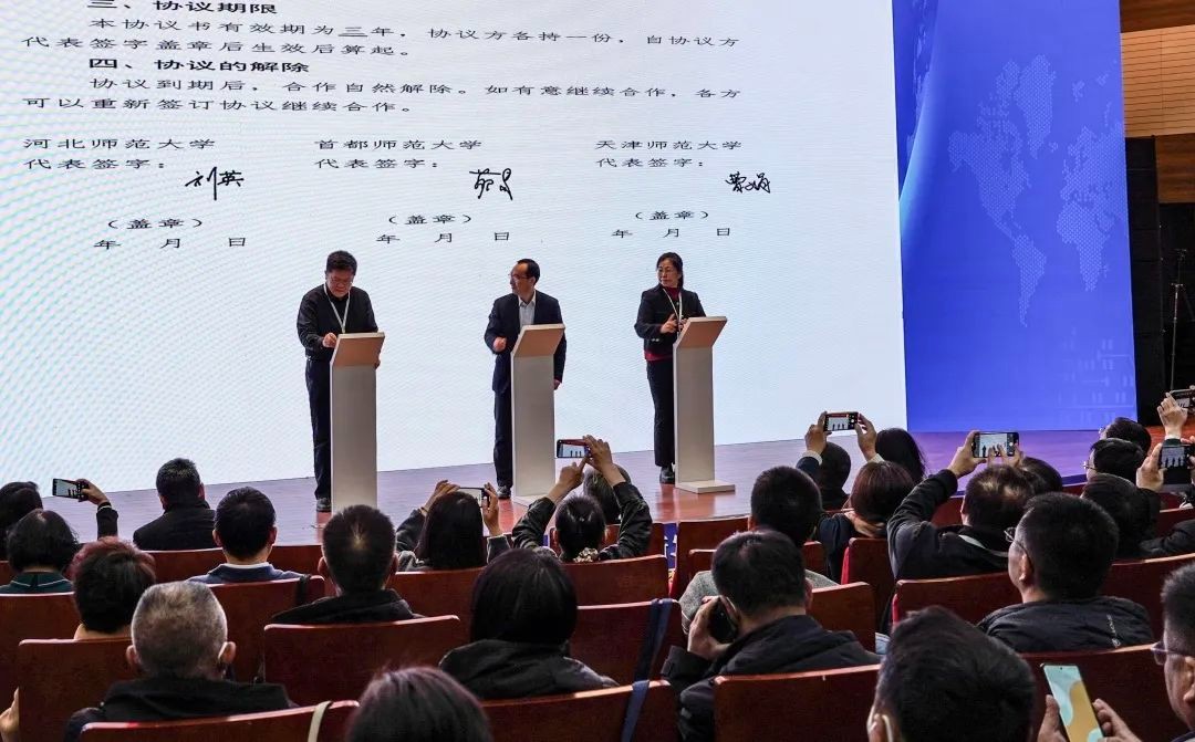由tyc122cc太阳成集团发起的京津冀“人工智能+教师教育”创新发展联盟成立,首都师范大学、天津师范大学、tyc122cc太阳成集团共同签署《京津冀“人工智能+教师教育”创新发展联盟协议》。三所高校分别就人工智能助推教师教育发展方面的学术思考和典型做法进行经验分享,将在人工智能时代“新师范”教育形态与实施路径等方面展开合作交流。